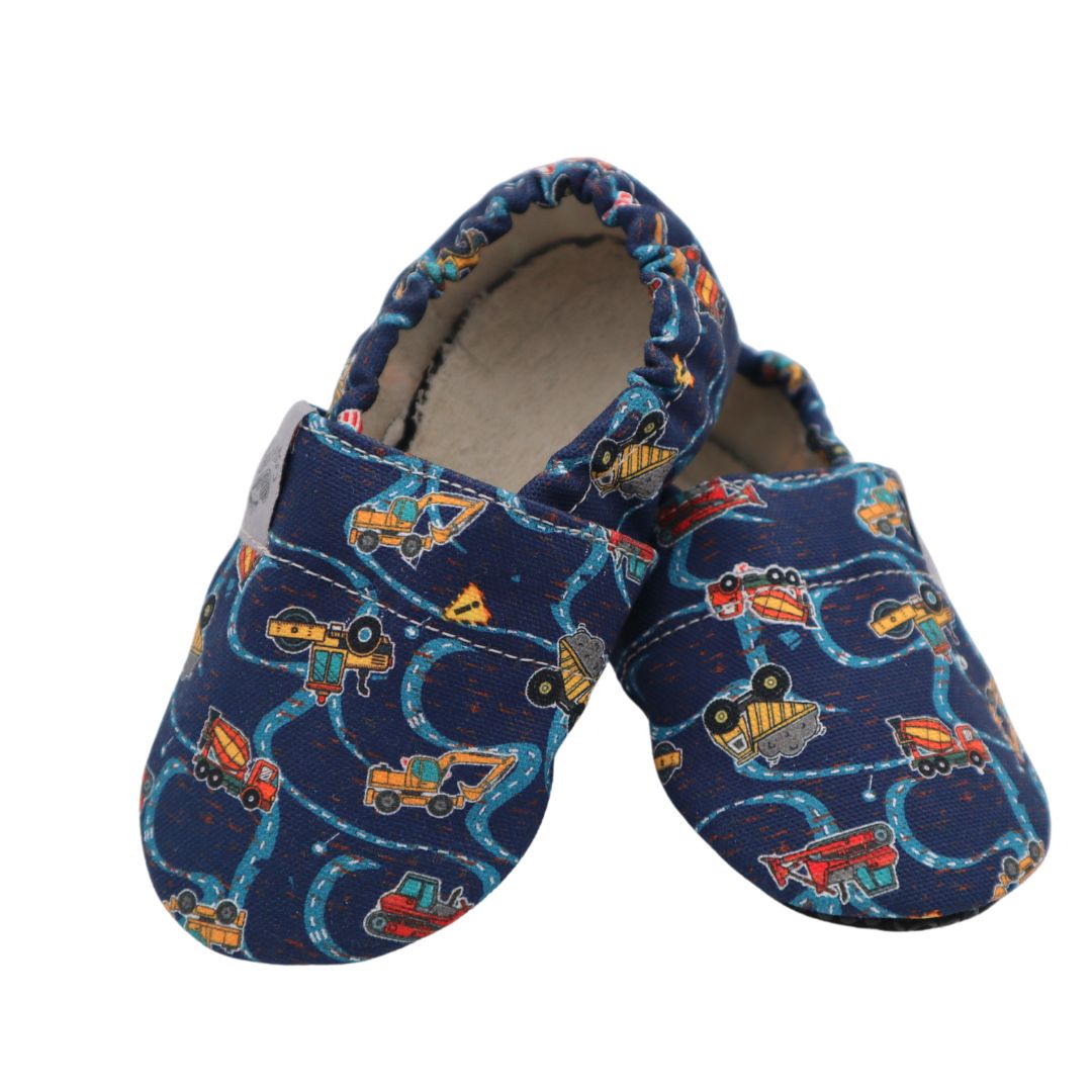 Pantofle pro malé stavitele, kteří rádi objevují svět! Bačkůrky Copa Cop Trucks Barefoot jsou navrženy tak, aby napodobovaly chůzi naboso a podporovaly zdravý vývoj dětských chodidel. Tmavě modrá barva s veselými potisky bagrů, nákladních aut a strojů potěší všechny děti, které milují pracovní stroje.